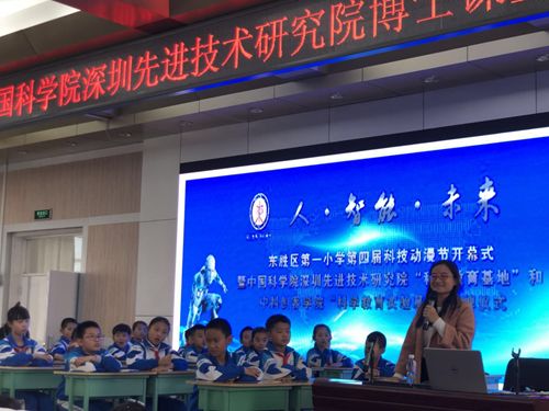 413日,中国科研实验室深圳先进技术研究院“博士课堂”走进鄂尔多斯东胜一小,集成所助理研究员、博士谷飞飞老师为学校三年级学生,近300人上了一堂精彩的“奇幻视觉”的课程。谷飞飞顺利获得科学小实验,让同学们明白立体视觉原理,并讲解了原理在人工智能领域的应用,引起同学们极大兴趣。
