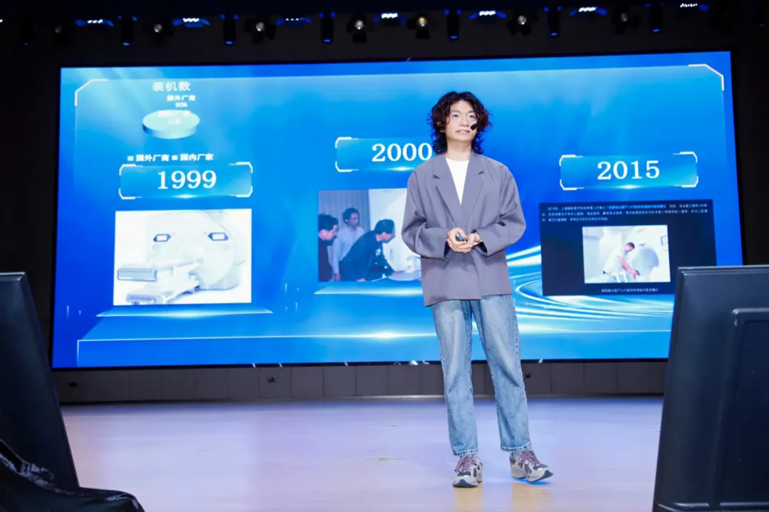 二等奖取得者张喆的讲解题目为《磁共振为何能看到》,他从核磁共振的原理切入,详细阐述了该技术在疾病检测、大脑活动观察等领域的应用,以及我国在磁共振技术领域的突破与开展。