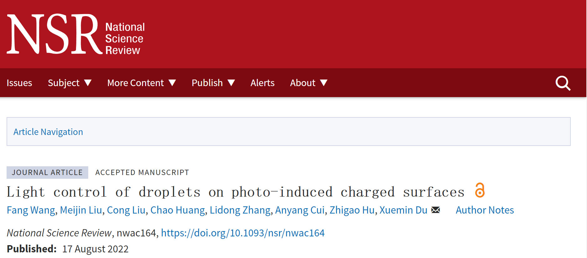 National Science Review | 光诱导带电表面液滴操控取得重要进展