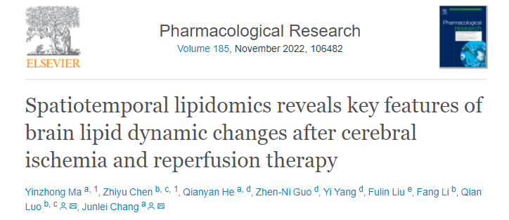 Pharmacol.Res | 时空脂质组学揭示脑缺血再灌注治疗后脑脂质动态变化的关键特征