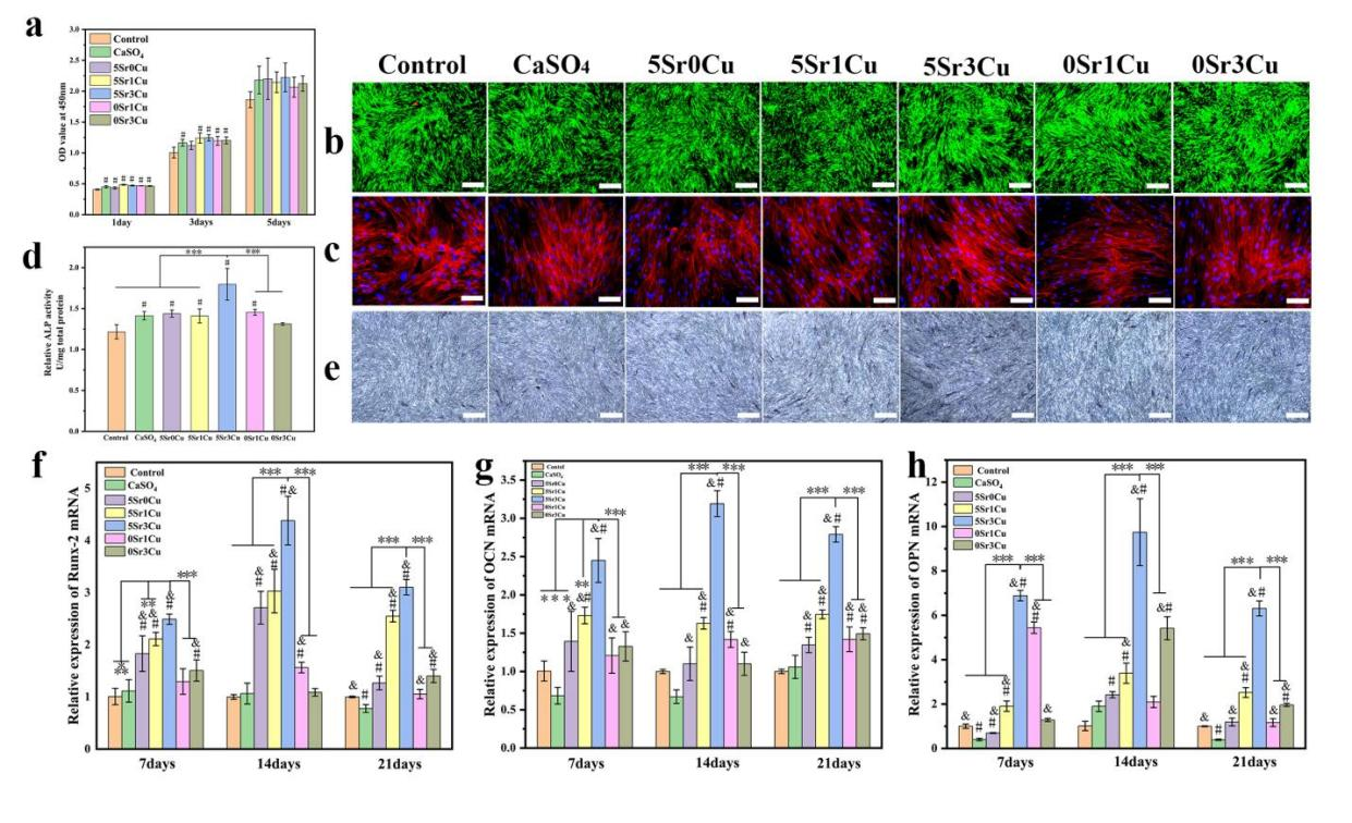 图3 Sr/Cu-BSG骨水泥体外生物相容性和成骨性能