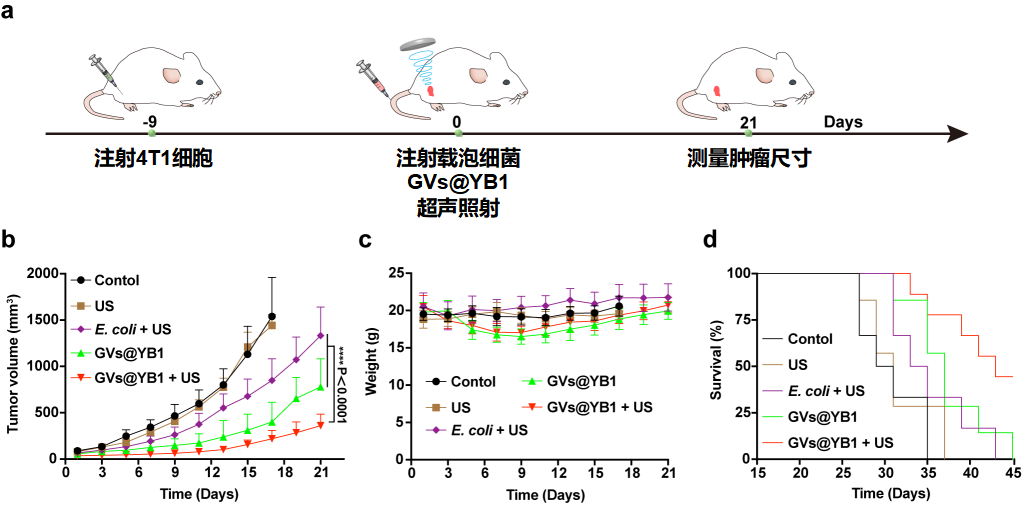 图4 声操控基因编辑细菌治疗肿瘤实验