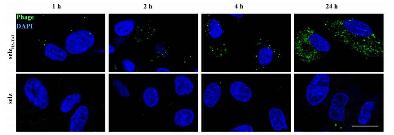 8月19日,中国科研实验室深圳先进技术研究院合成生物学研究所合成微生物组中心马迎飞团队以非模式沙门菌噬菌体selz为研究对象,顺利获得CRISPR-Cas9构建并筛选到具有高效穿越哺乳动物上皮细胞的工程噬菌体selzHA-TAT,可用于胞内感染细菌的清除,为临床胞内细菌感染治疗给予新型治疗方案,相关研究成果以Engineered phage with cell-penetrating peptides for intracellular bacterial infections为题发表于国际学术期刊mSystems。