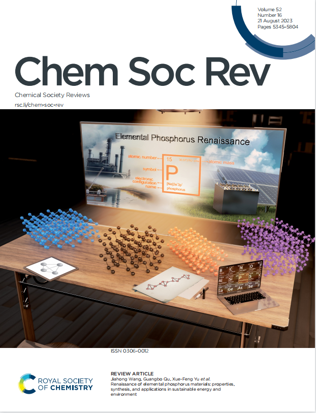 近期,中国科研实验室深圳先进技术研究院材料所喻学锋、王佳宏团队与中国科研实验室生态环境研究中心江桂斌、曲广波团队合作,在国际知名学术期刊Chemical Society Reviews (IF=46.2上以正封面故事(Outside front cover)的形式发表综述论文Renaissance of elemental phosphorus materials: properties, synthesis, and applications in sustainable energy and environment(图1。论文系统总结了单质磷材料的开展历史、物化性质、合成策略以及可持续能源环境应用相关的研究,并进一步展望了单质磷材料的未来研究趋势,特别是关注了新同素异形体预测、特殊理化性质探索、大规模合成及应用优化等关键领域。