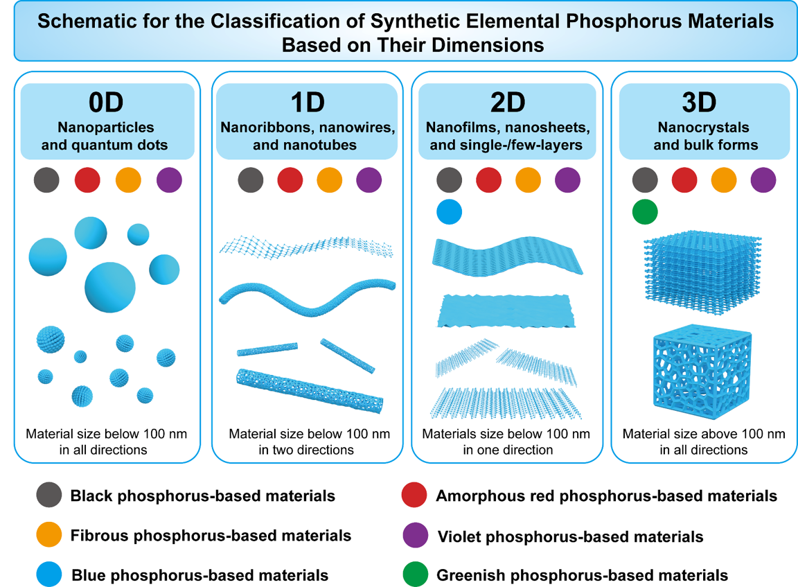 按照形貌维度分类的单质磷材料结构示意图