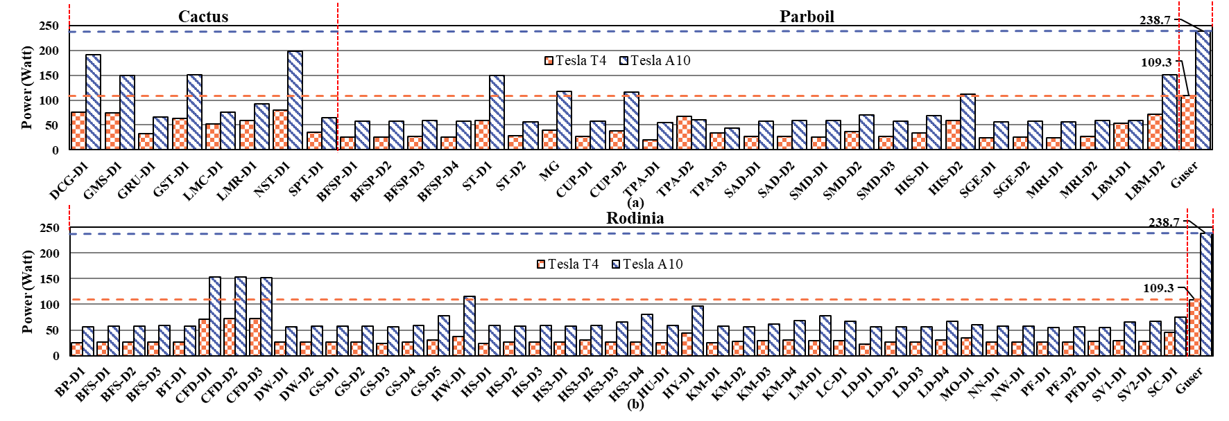 该项研究致力于准确评估通用计算GPU(GPGPU)的极限功耗,提出了一种GPGPU极限功耗测试程序自动生成方法, GPGPU供电和散热系统的优化设计给予依据。“Power stressmark”对于估计GPGPU 热设计功耗 (TDP) 以确保高效的功耗控制至关重要。Guser是首个生成 GPGPU Power stressmark的系统方法。主要包括三个关键方法:第一时间,指令功耗分析,分析了每个算术指令在不同操作数数据宽度下的功耗行为、执行时间、流水线利用率和硬件单元占用情况其次,基于流水线的指令分组,用于将所有 PTX 指令分类为多个组;最后,量化功耗影响因子的重要性,用于选择少量但重要的可调节参数。基于GPGPU Tesla T4(图灵架构)和 Tesla A10(安培架构)实验表明,使用Guser T4 生成的 Power stressmark(T4-stresser)功耗达 109.3 瓦特,以及 A10 生成的Power stressmark(A10-stresser)功耗达 238.7 瓦特,分别比当前最先进CPU Power stressmark方法高出 48.7% 和 73%。 此外,T4-stresser 和 A10-stresser 的功耗明显高于当前主流的三个基准测试程序集(Cactus、Rodinia 和 Parboil)中任何基准测试所达到的功耗。