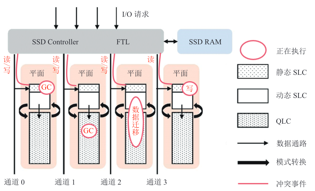 摘要:混合式固态存储已成为当前消费级终端领域的主流存储设备。然而在学术领域,关于混合式固态存储设计和问题的讨论与分析仍不够充分。该文针对现有的混合式存储设备,结合相关领域前沿研究,从混合式闪存架构介绍、亟待解决的痛点问题和相关研究进展 3 个方面进行讨论和分析。文章介绍和分析了混合式闪存的主流架构及其特点,展示了在真实设备平台上测试的实验数据结果,揭露了混合式闪存中亟待解决的问题,重点介绍了读特征、写特征、读写冲突和容量特征相关问题。同时 介绍了相应问题的最新研究进展,并分析了各个技术的优劣和未来的开展方向。