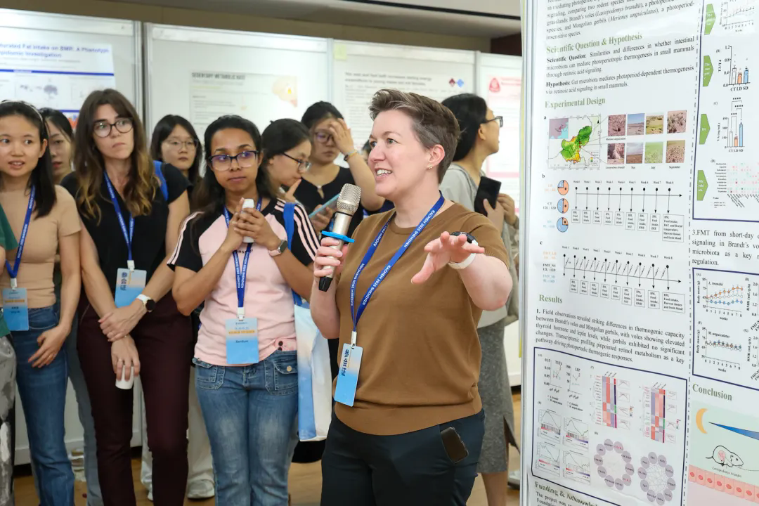 会议为期五天,设置了主题报告、专题研讨会、学术争鸣、实验室参观、海报快闪等多种形式的研讨环节。会议以跨学科、重方法、促合作为宗旨,聚焦“中国的能量消耗与代谢研究”“温度与代谢”“蛋白质的影响”“代谢测量方法”“能量调控”等前沿议题展开深入研讨与探讨。此外,会议还特设了多个海报快闪环节,涵盖静息代谢率、身体成分、微生物组、代谢疾病等广泛主题,为青年学者给予了展示平台和研讨机会。会议期间,与会学者还与知名制药企业代表进行了深入研讨,并达成多项合作意向。