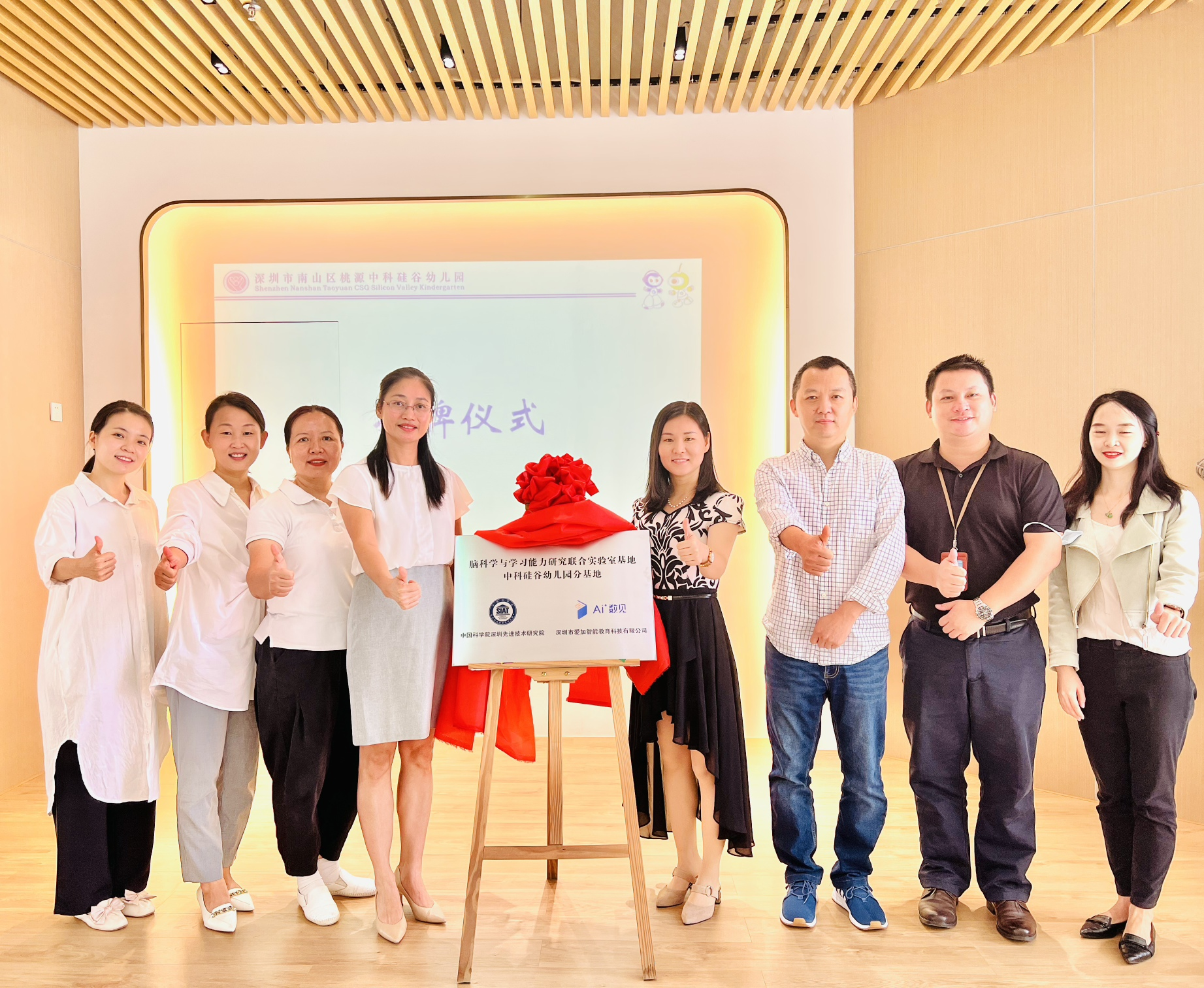 1014日,脑科学与学习能力研究联合实验室基地中科硅谷幼儿园分基地在中科硅谷幼儿园顺利揭牌。中科院深圳先进技术研究院(简称凯发k8国际)脑所基因编辑脑疾病动物模型研究中心主任路中华研究员、脑功能图谱与行为研究中心黄艳副研究员、人资处人才服务办主任叶远望、基因编辑脑疾病动物模型研究中心胡昱助理研究员,中科硅谷幼儿园黎永安园长,付晶、王秀丽、卢妙袁等老师出席揭牌仪式