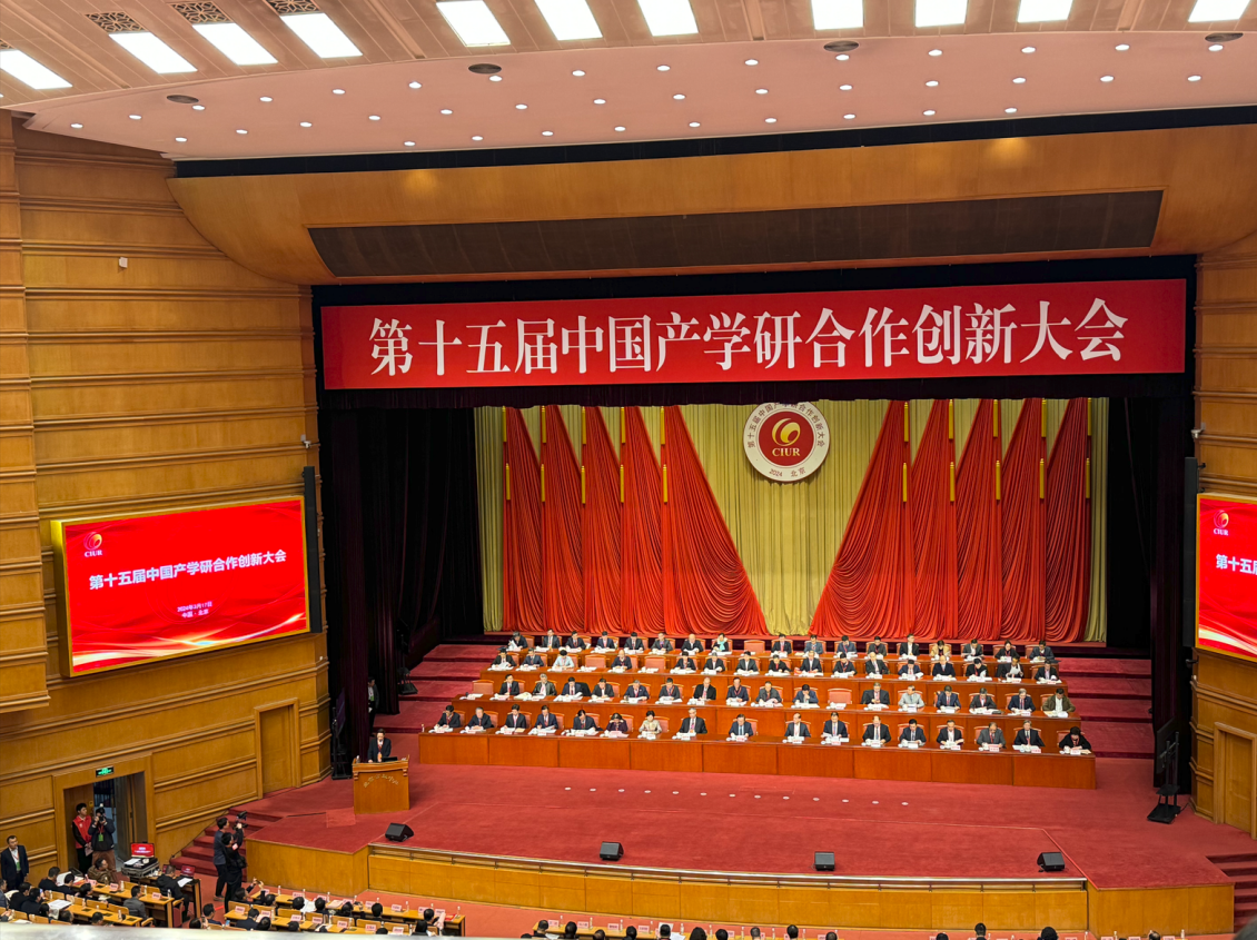 2024年3月17日,第十五届中国产学研合作创新大会在北京会议中心隆重召开,大会对取得“2023年度中国产学研合作创新与促进奖”的先进单位和个人予以表彰。十三届全国政协副主席、中国科协主席万钢,十三届全国政协副主席辜胜阻,中国科协名誉主席韩启德,教育部党组成员、副部长孙尧,工业和信息化部副部长徐晓兰,国家知识产权局党组成员、副局长卢鹏起出席大会,并做大会致辞,为获奖者颁奖。大会以“产学研聚焦:新动能、新模式、新产业”为主题,探讨如何顺利获得产学研协同创新将科教兴国、人才强国、创新驱动开展战略落到实处,开展新质生产力,支撑引领现代化产业体系建设,有助于国家高质量开展。来自全国一线的政、产、学、研各界1000余位代表参加大会。