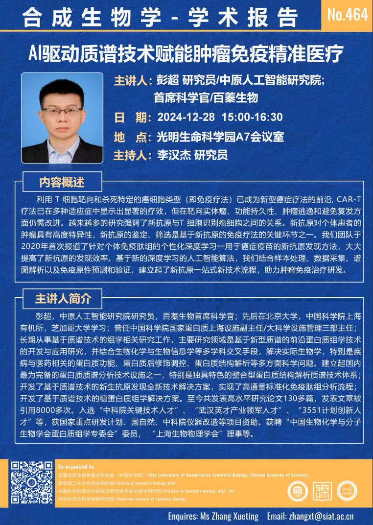 【2024年12月28日  合成所/合成生物学院】AI驱动质谱技术赋能肿瘤免疫精准医疗