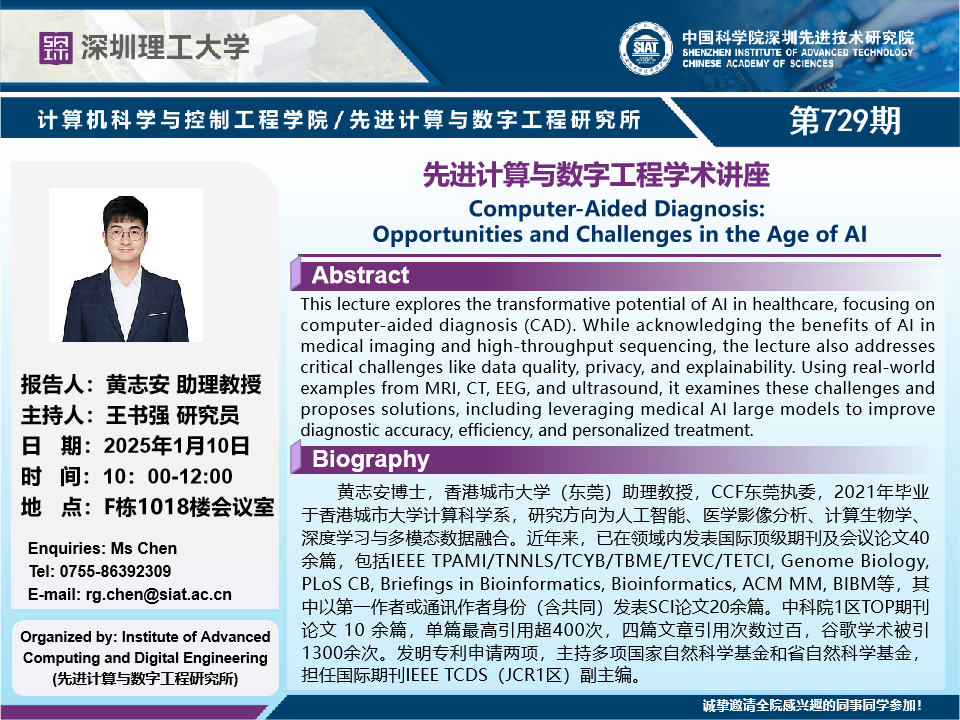 【2025年1月10日  数字所/计算机学院】Computer-Aided Diagnosis: Opportunities and Challenges in the Age of AI