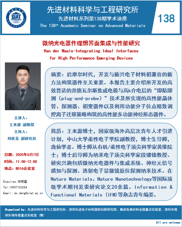 【2025年5月7日  先进材料科学与工程研究所】微纳光电器件理想界面集成与性能研究