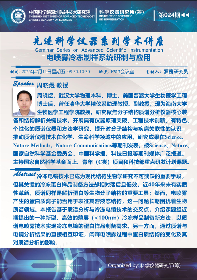 【2025年7月11日  科学仪器研究所(筹)】电喷雾冷冻制样系统研制与应用